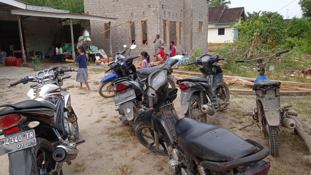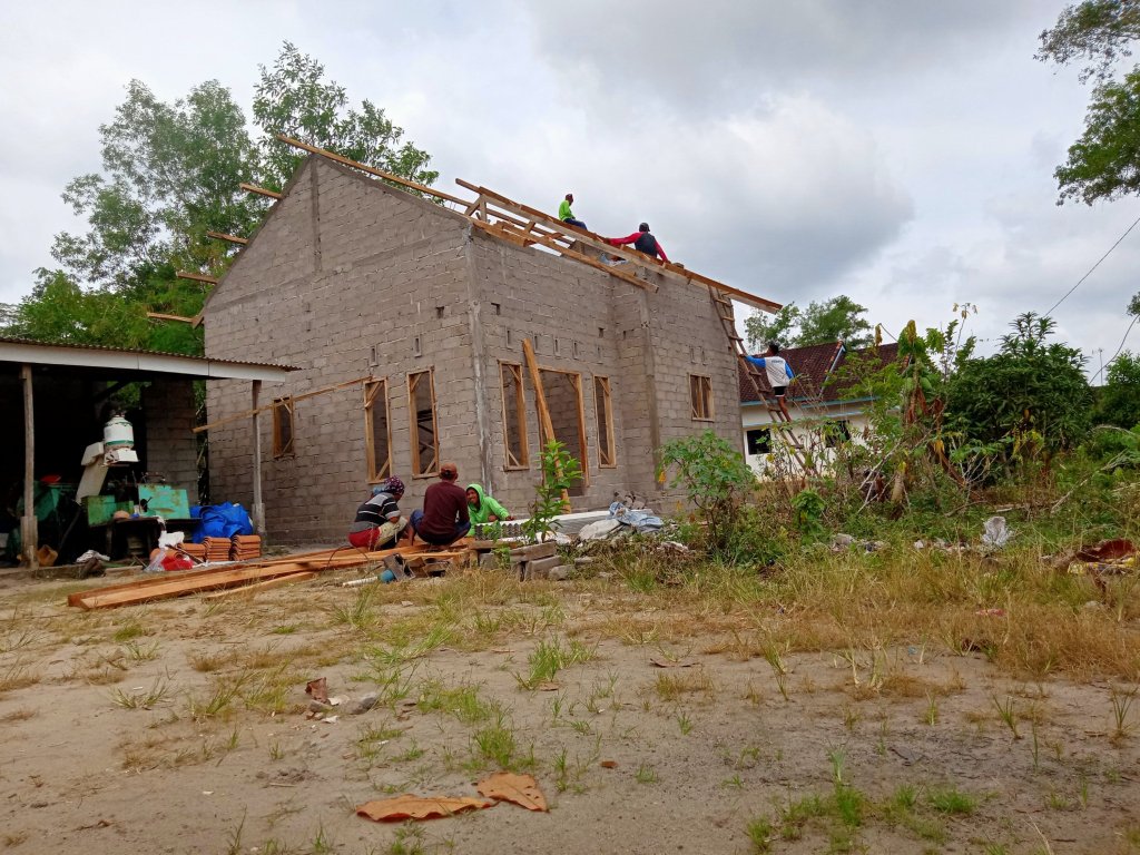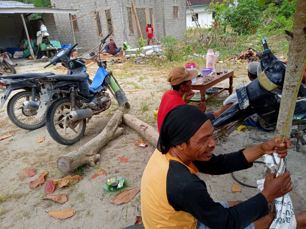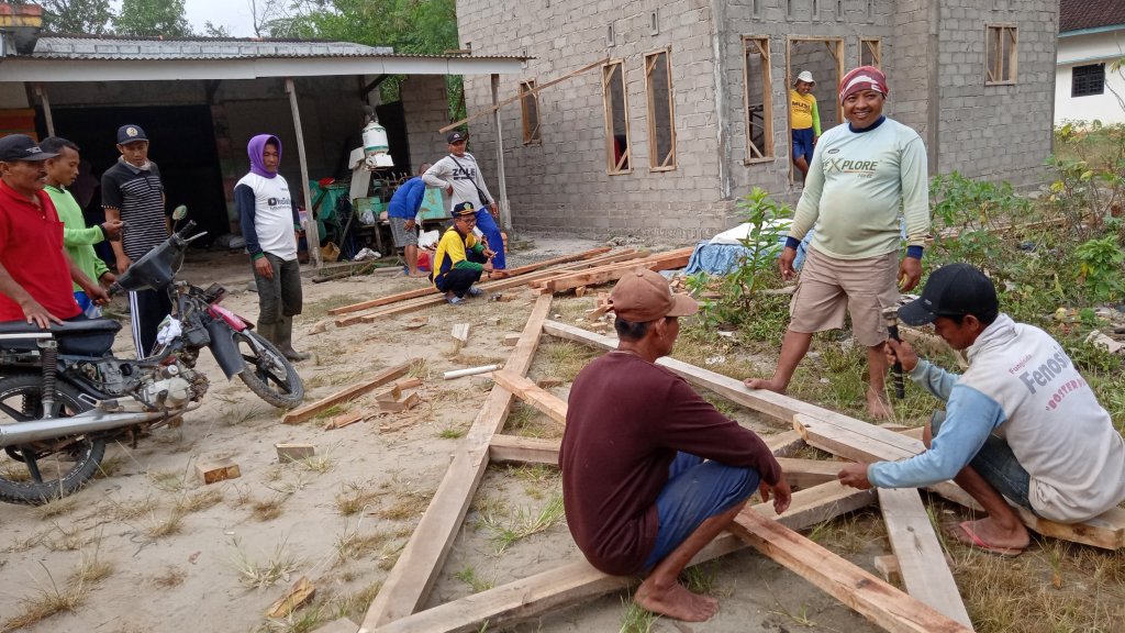 Pasiran Jaya – Rabu, 1/2/2023. Saat ini, membangun rumah merupakan kegiatan yang dikerjakan sepenuhnya oleh tukang bangunan atau bahkan pemborong. Akan tetapi, zaman dahulu masyarakat jawa khususnya, bergotong royong untuk membangun sebuah rumah. Dikenal dengan istilah “Sambatan”, berasal dari kata “sambat” yang dapat diartikan minta tolong. Sehingga, kegiatan “sambatan” dapat diartikan pula sebagai kegiatan warga untuk menolong warga lain yang sedang membangun atau merenovasi rumah. Tradisi ini sudah lama dilaksanakan, dan sampai saat ini masih sering dilakukan oleh masyarakat. Seperti warga Dusun Pasir Makmur, RT 01/04 Kampung Pasiran Jaya, mereka baru saja melakukan kegiatan “sambatan mbangun umah” yakni membantu mendirikan rumah Bapak Khoir yang juga merupakan warga RT tersebut. Dalam melakukan kegiatan ini, biasanya para bapak bertugas mendirikan rumah dan melakukan aktivitas berat lainnya.